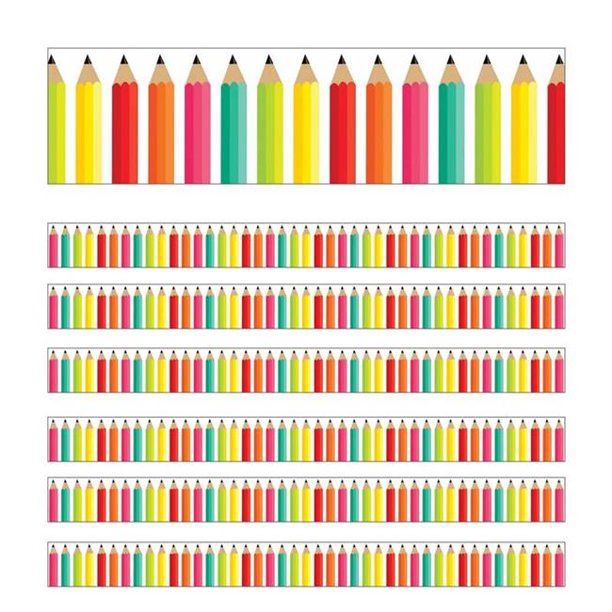 Pencils Straight Borders set includes 12 border strips, each measuring 3' x 3" for a total length of 36' per pack.